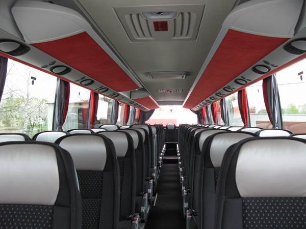 - wygodne, rozkładane i rozsuwane siedzenia ze skórzanymi zagłówkami, podłokietnikami i z regulowanymi podnóżkami, większa przestrzeń między fotelami