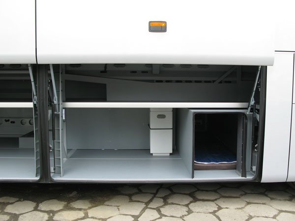 - składane stoliki przy każdym siedzeniu